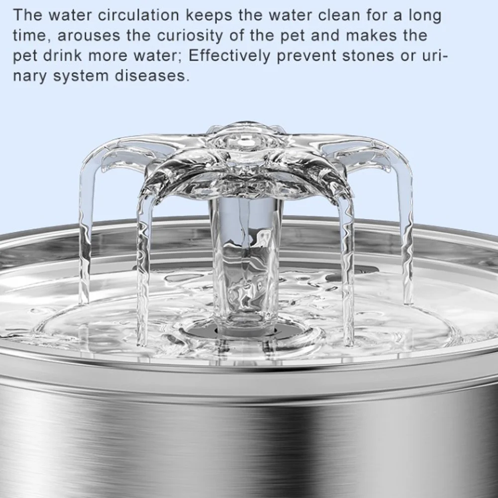 2L Automatic Pet Water Fountain 304 Stainless Steel Automatic Circulation Water Fountain Auto Filter Pet Drinker for Indoor Pet
