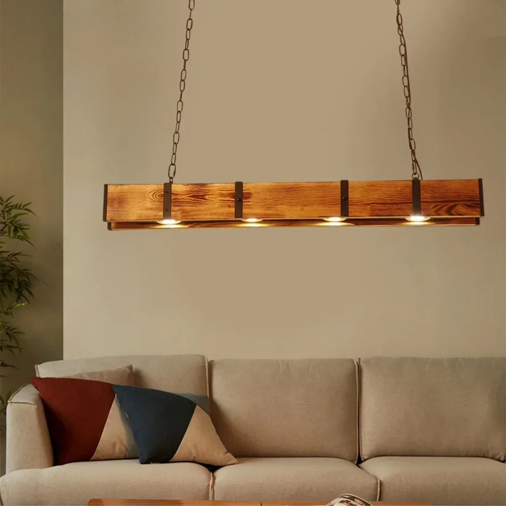 American Style Industry Ceiling Light Vintage Rustic Lamp Wood Beam Farmhouse Chandelier Pendant Lamp