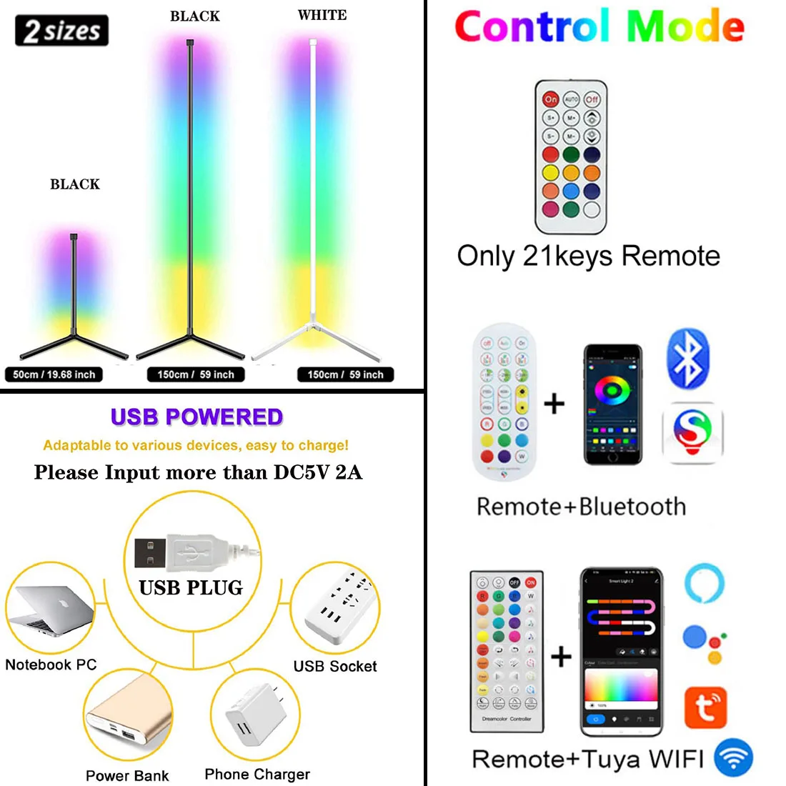 ❤ RGB Floor Lamp are available in different heights and colors;